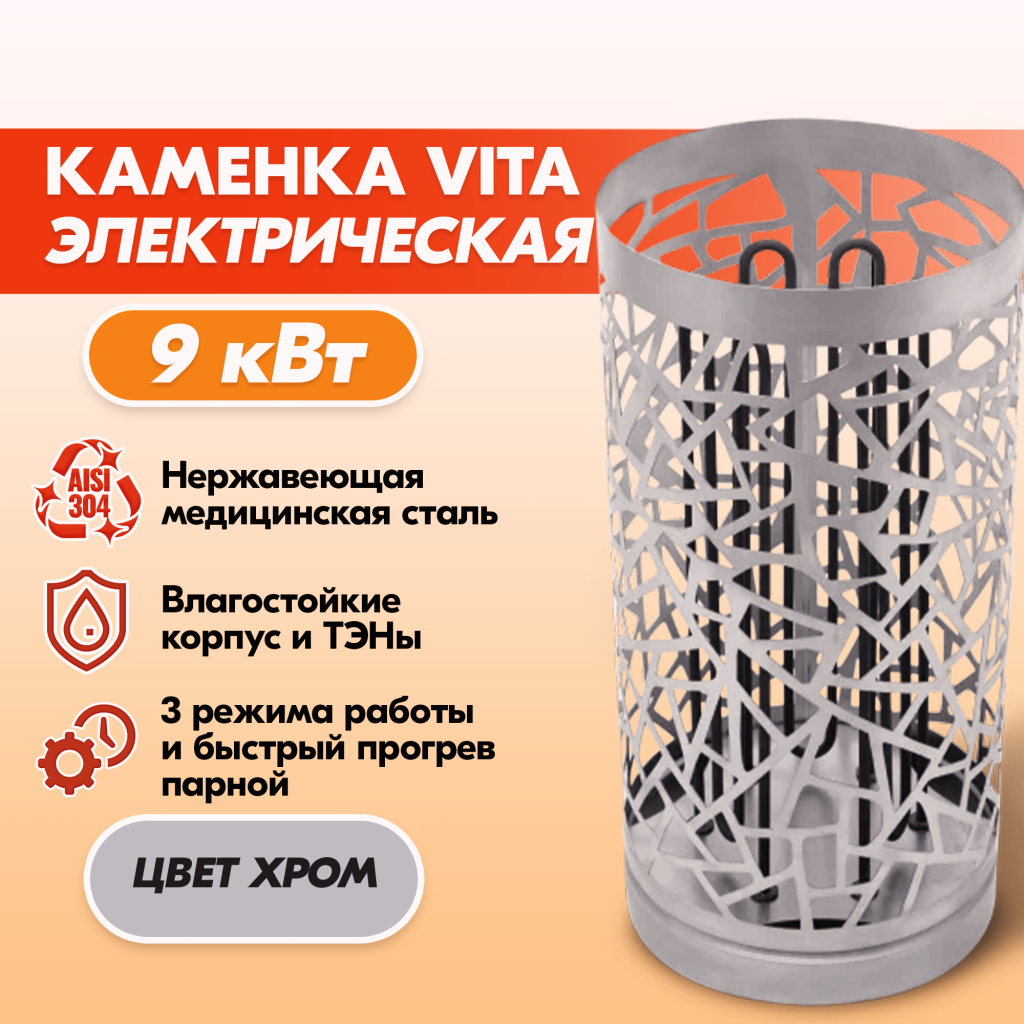 Электрокаменка VITA 9 кВт нерж. в Туле | Доставка по России