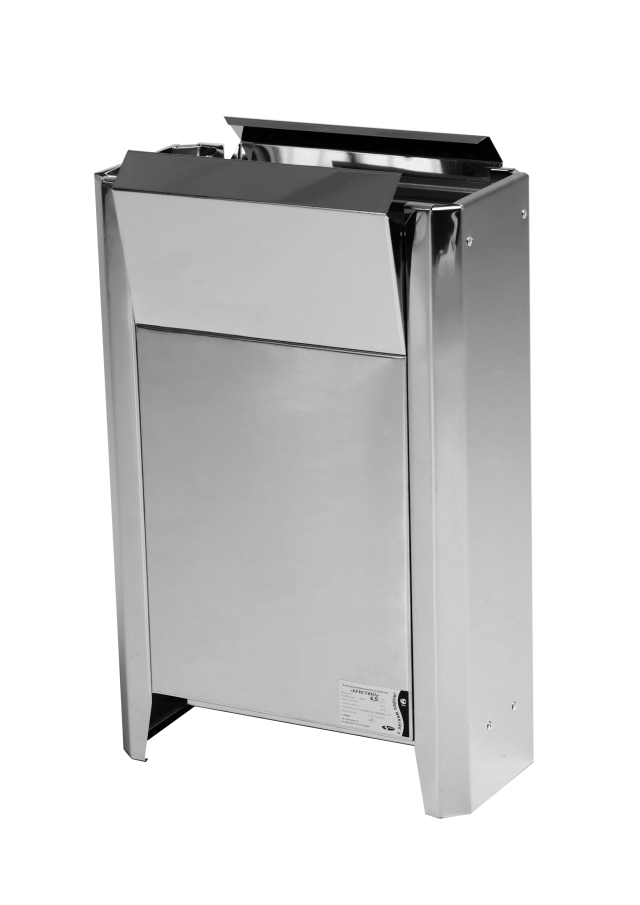 Печь постоянно модернизируется и совершенствуется. Корпус ее изготовлен из нержавеющей стали, а сам нагреватель выполненный в виде рамок, с высокоомной стальной лентой. Температура ленты не превышает 500* С, что гарантирует ее долговечность и кроме того она не «сжигает» кислород, при этом за счет большой теплообменной поверхности обеспечивает быстрый нагрев парного помещения. Управляется печь с выносного пульта.