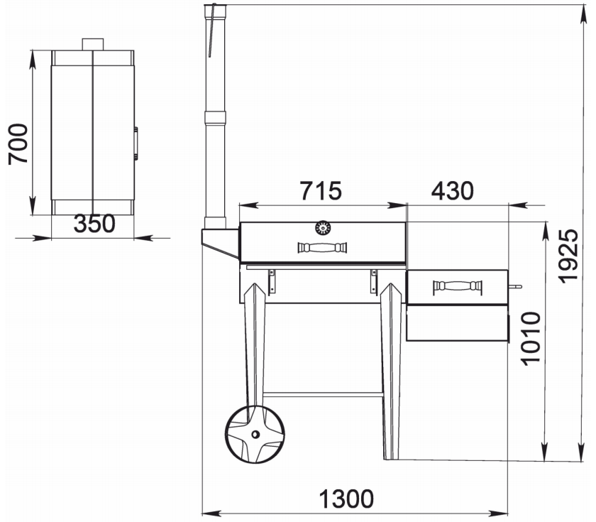 Все узлы смокер-гриля Сибирь выполнены из высококачественной стали толщиной 3 мм. Общий вес установки составляет более 100 кг.