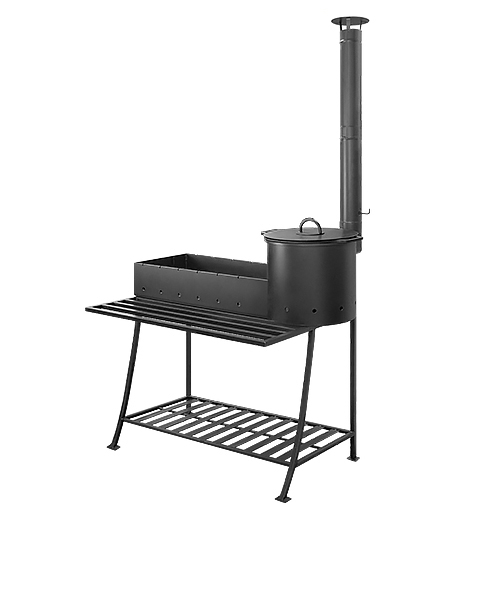 Мангал "Надежный Плюс" получил свое название из-за того, что произведен из 6мм котловой стали, покрытый термостойкой кремнийорганической эмалью, также особенностью мангала является печь под казан с высокой вытяжной трубой самоварного типа. На мангале можно одновременно готовить пищу на шампурах и в казане. Так как мангал стационарный для защиты от осадков в комплекте поставляется крышка для мангальной вставки и печи под казан.