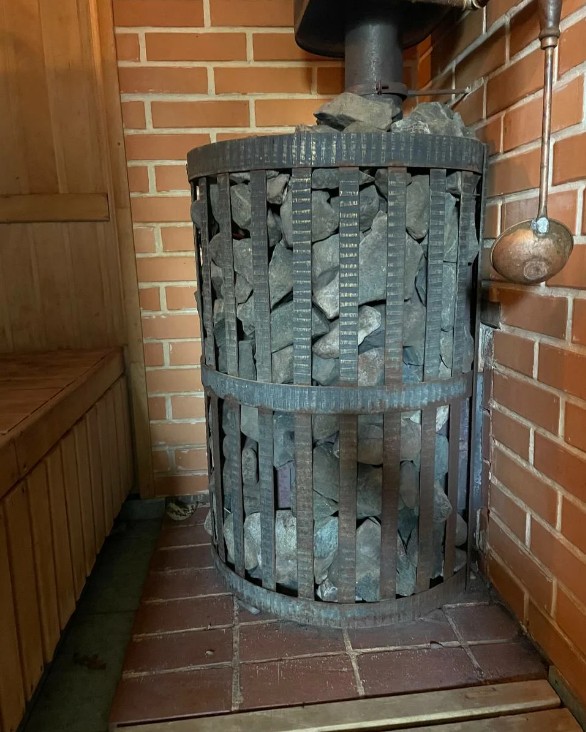 Закрытая каменка изготовлена из стали, вмещает в себя около 60кг камней. В закрытой каменке камни прогреваются быстрее и получается мелкодисперсный пар.