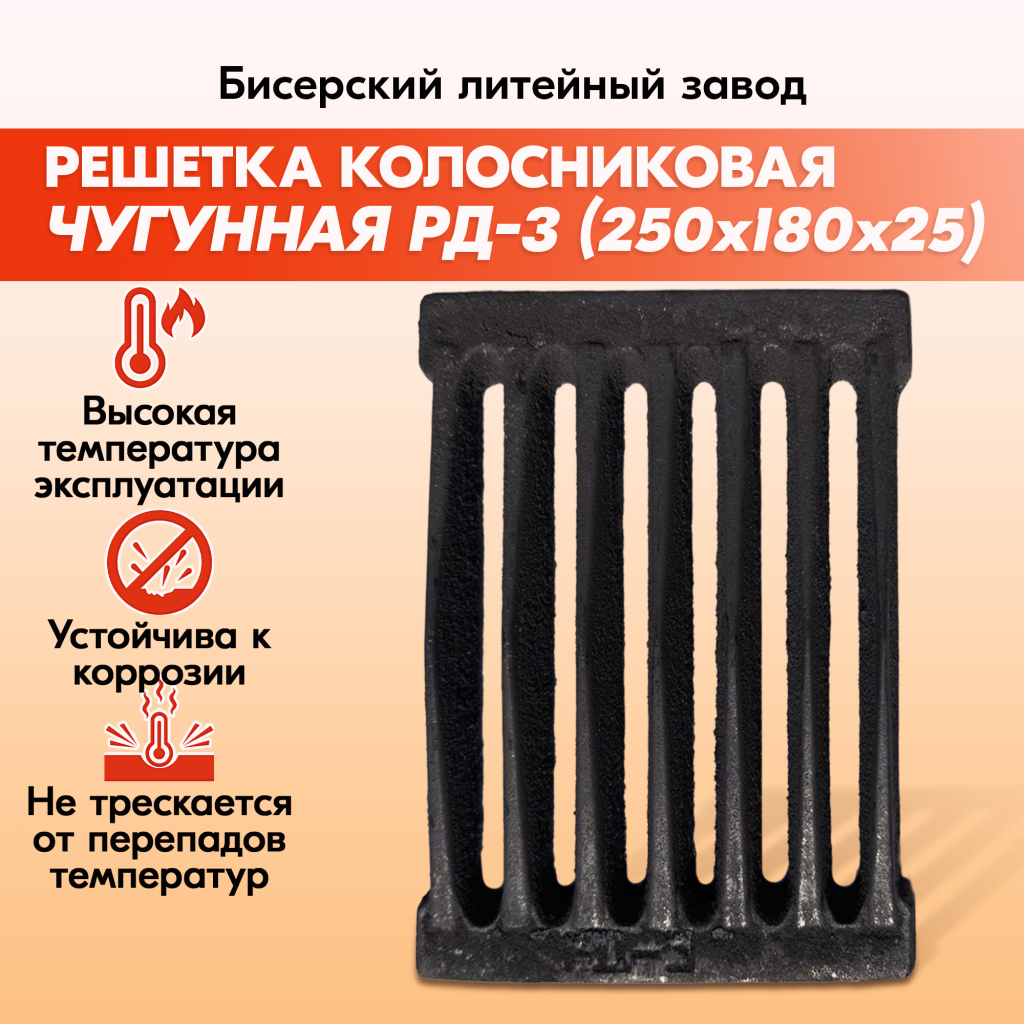 Решетка колосниковая РД-3 (250х180) чугунная для печи и котла, правильные колосники для котлов и печки.