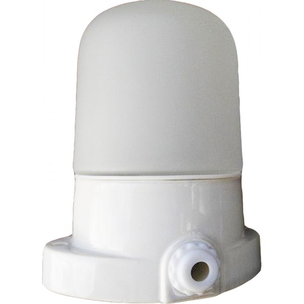 Корпус изготовлен из керамики, материал плафона- селикатное термостойкое стекло матового цвета. Между корпусом и плафоном светильника установленно термостойкое силиконовое уплотнение для защиты от проникновения влажного пара, брызг воды и пыли.