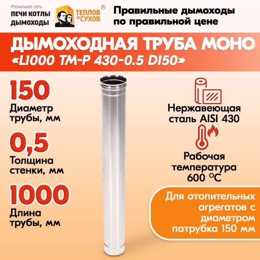 Трубы для дымохода из нержавейки L1000 ТМ-Р 430-0.5 D150 для бани, газовый дымоход для котла