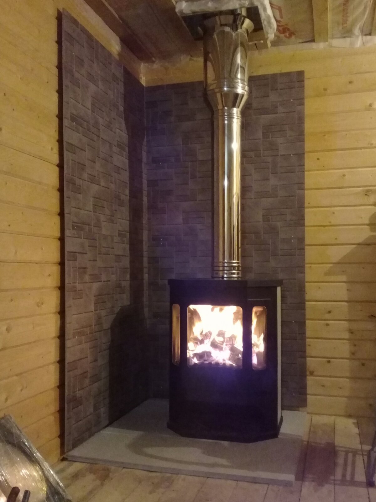 Установка Камина Печь-камин БАВАРИЯ ПРИЗМАТИК пристенно угловой и дымохода (Комплект)